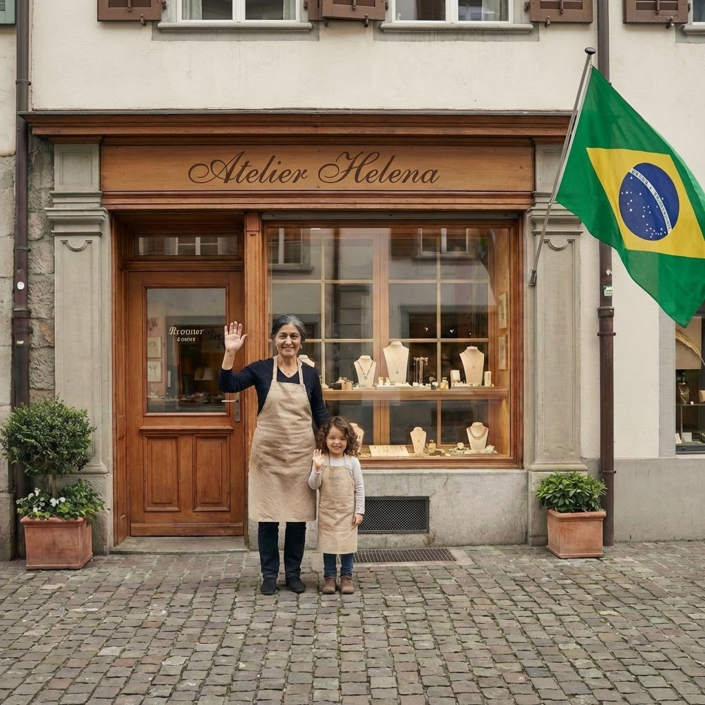 Colocamos nosso coração e alma em cada criação — em colares, brincos, anéis…